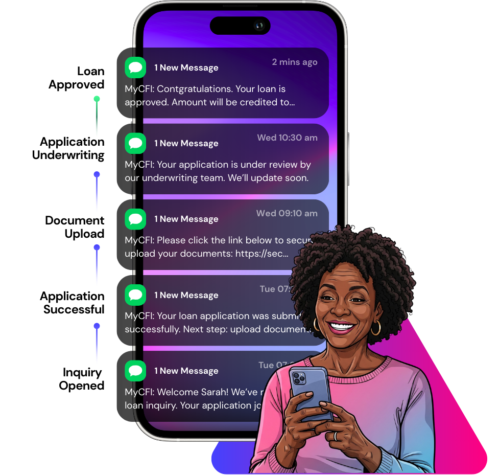 Automated “Pizza Tracker”-style updates to inform on loan status.